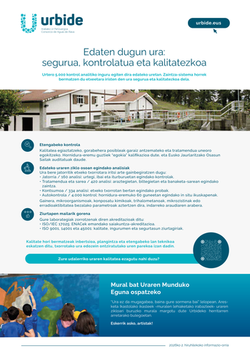 Urtero 5.000 kontrol analitiko inguru egiten dira edateko uretan. Zaintza-sistema horrek bermatzen du etxeetara iristen den ura segurua eta...